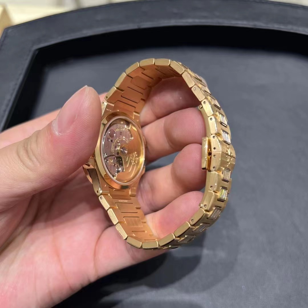 百达翡丽运动优雅系列7014/1R-001腕表(鹦鹉螺)多少钱回收销售价格 品牌:百达翡丽 系列:运动优雅 机芯类型:自动机械 性别:女士腕表 表盘颜色:金棕色 表盘形状:圆形 表带颜色:金色 表扣类型:折叠扣 表壳材质:18k玫瑰金镶钻 表盘材质:金棕色日辉纹表盘,覆荧光涂层的金质立体时标,钻石时标 表镜材质:蓝宝石水晶玻璃 表带材质:18k黄金,镶嵌146颗长形钻石 表扣材质:18k玫瑰金 详情请咨询官方电话: 15679987654 (长按复制) 详情请咨询官方微信: 15679987654 (长按复制) |
