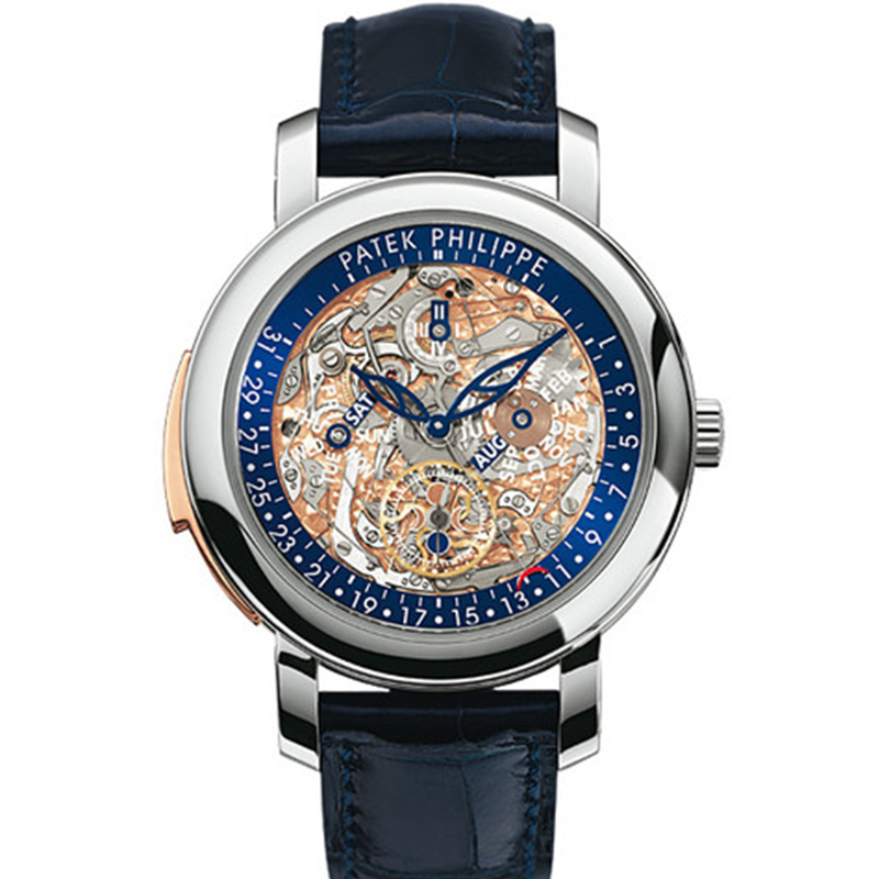 百达翡丽 Ref. 5016A-010专为Only Watch 2015慈善拍卖打造,是首枚也是唯一一枚精钢材质款。这种金属光泽在百达翡丽超级复杂功能腕表中颇为罕见,而优雅的蓝色珐琅表盘更是对传统手工艺的完美礼赞。