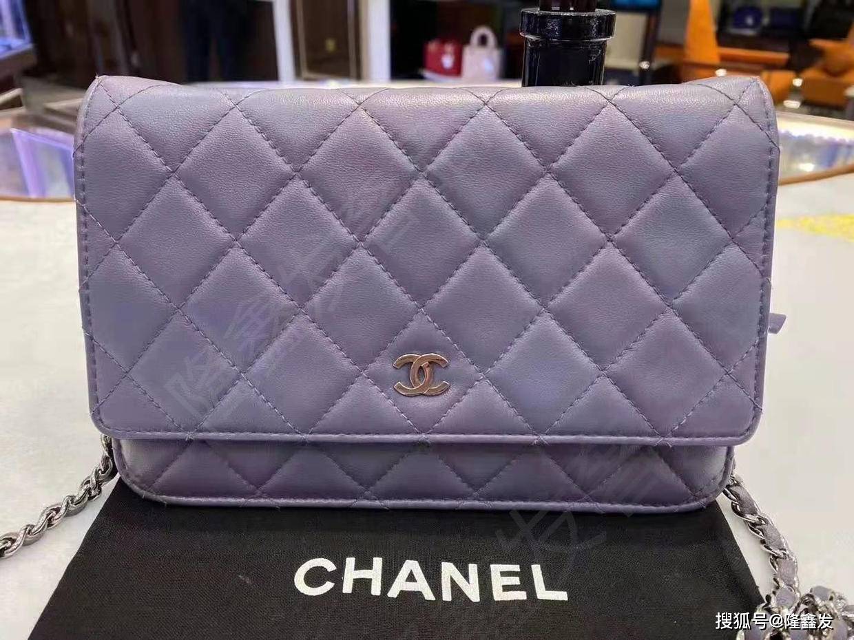 香奈儿儿链条包/发财包,使用经典羊皮打造,菱格纹理,香芋紫色显高级感,实用简约高贵。
