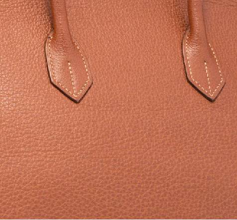 Hermès最经典的小牛皮,容易划伤,但随着时间推移,慢慢变旧后会有一种特别的classic的感觉。Box calf是光滑而且带有油光感的小牛皮,尽管它容易划伤,现在还是有些复古包,中性包用它来制作。 Epsom牛皮